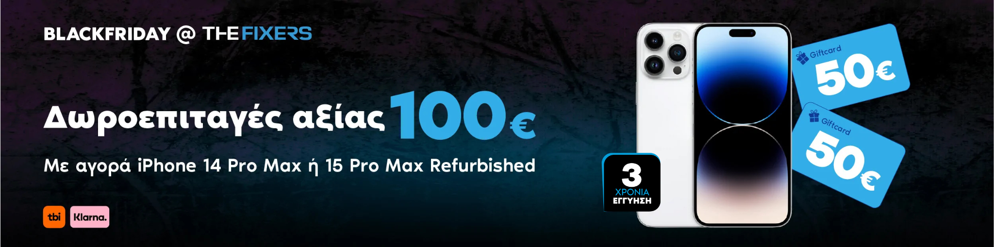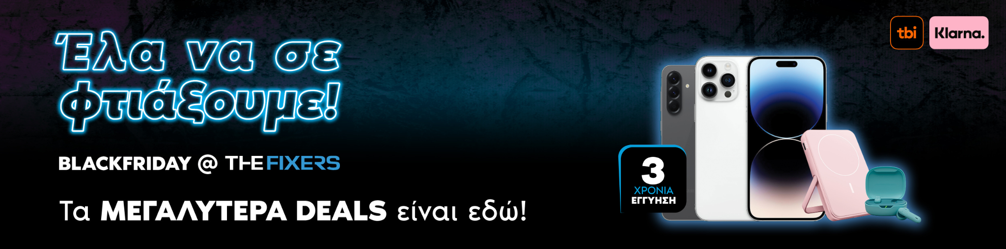 Κατά τη διάρκεια της Black Friday 2025, οι The Fixers φέρνουν μοναδικές ευκαιρίες σε Refurbished iPhone με 3 χρόνια εγγύηση, καινούρια smartphones από Samsung και Xiaomi, αλλά και όλα τα αγαπημένα σου αξεσουάρ. Από θήκες, ηχεία και ακουστικά, μέχρι powerbanks και φορτιστές, εδώ θα βρεις ό,τι χρειάζεσαι για να αναβαθμίσεις τη συσκευή σου, με προσφορές Black Friday που δεν συναντάς κάθε μέρα. Σημαντική σημείωση: Η περίοδος Black Friday δεν είναι επίσημη περίοδος εκπτώσεων ή προσφορών. Στους THEFIXERS επιλέγουμε και σου προσφέρουμε συγκεκριμένα αγαπημένα σου προϊόντα στην καλύτερη δυνατή τιμή!